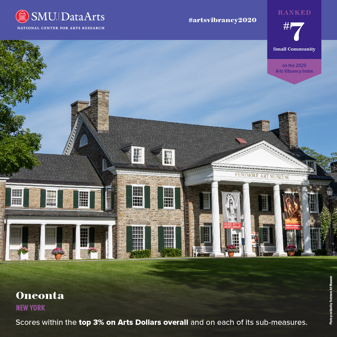 Otsego County, represented as the Oneonta, NY, MSA, takes community development and living green to heart. Culture is abundant with world-class opera, national art exhibitions, theater, concerts, and a rich historical past. The National Baseball Hall of Fame and Museum can be found in Cooperstown, which draws nearly 300,000 visitors per year. Cooperstown is also home to the Fenimore Art Museum, The Farmers’ Museum, and the famous Glimmerglass Opera. The Foothills Performing Arts and Civic Center serves a three-county area with performing arts events and educational outreach. The center was also deemed the “greenest” building to ever go through the NYSERDA program, which earned the venue a financial award. Arts in Oneonta is supported through the Community Arts Network of Oneonta and the Upper Catskill Community Council of the Arts. The community is ranked 17th on both arts and culture employees and program revenue. It scores in the top 3% of communities on Arts Dollars, as well as on each of the four underlying measures.