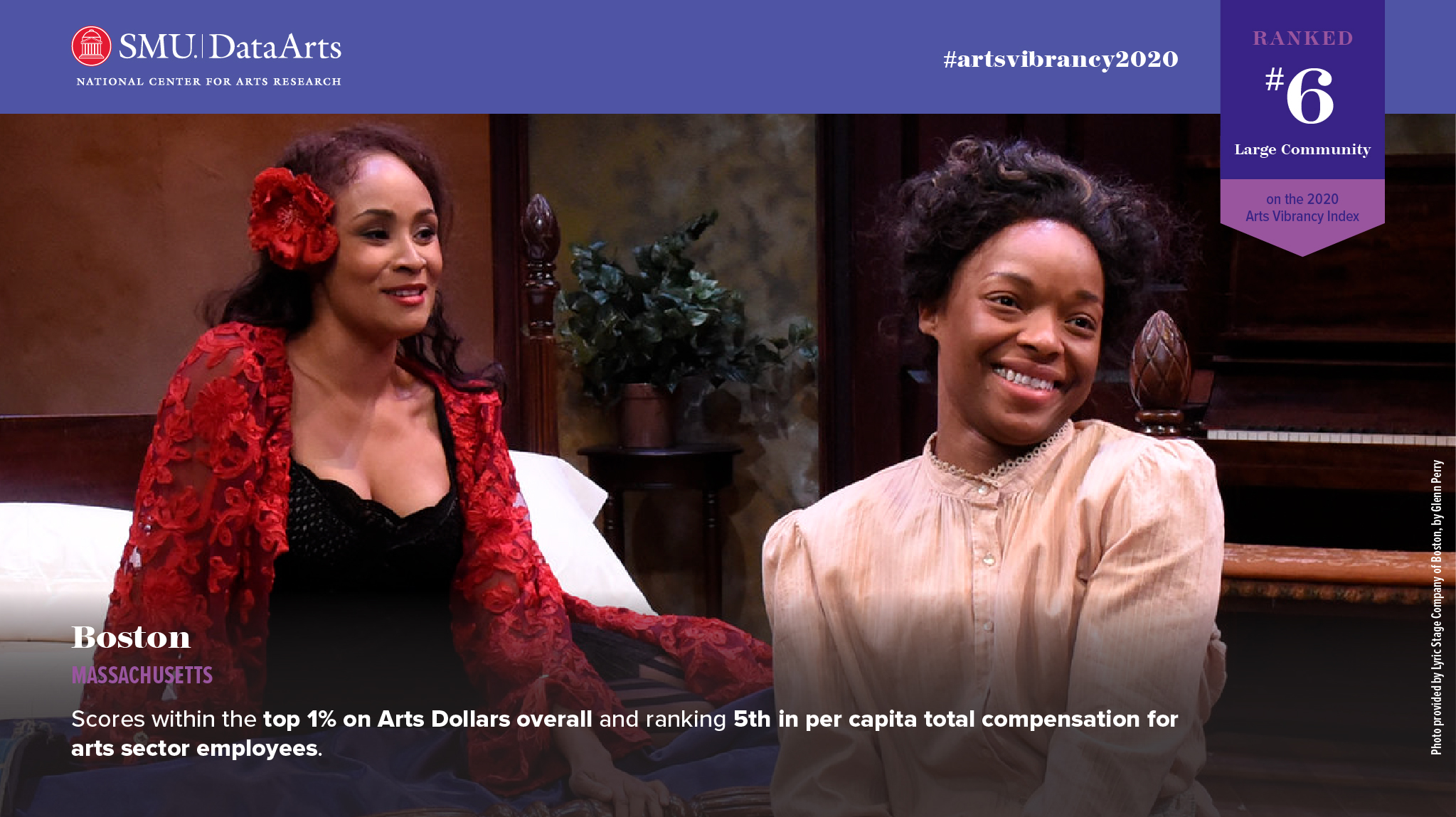 The Boston, MA, Metro Division’s arts community thrives on innovation and collaboration amongst organizations in the city’s arts sector and between arts organizations, neighboring communities, and other industries. From small organizations like The Record Co. and Company One to mid-sized, award-winning organizations like the Huntington Theatre Company, to icons such as the Boston Symphony Orchestra and the Museum of Fine Arts, Boston has a wide variety of arts programming and venues. ArtsBoston serves 175 arts and cultural organizations with research and audience-building programs. Now and There brings art out into the community, exhibiting public art in common gathering places. Iconic cultural institutions can be found all over the city, such as the Institute of Contemporary Art, Boston Children’s Museum, and Isabella Stewart Gardner Museum. Furthermore, the Mayor’s Office of Arts and Culture supports hundreds of organizations and serves around 1,500 artists annually through grants, technical assistance, and programs. Boston’s Percent for Art Program allocates 1% of the city’s annual capital borrowing budget to the commissioning of public art. Boston organizations rank in the top 1% for per capita contributed revenue, total expenses, and total compensation paid to those working in arts and culture. The city ranks in the top 5% for Arts Providers, with particular strength in the number of arts and culture employees, organizations, and entertainment firms per capita.