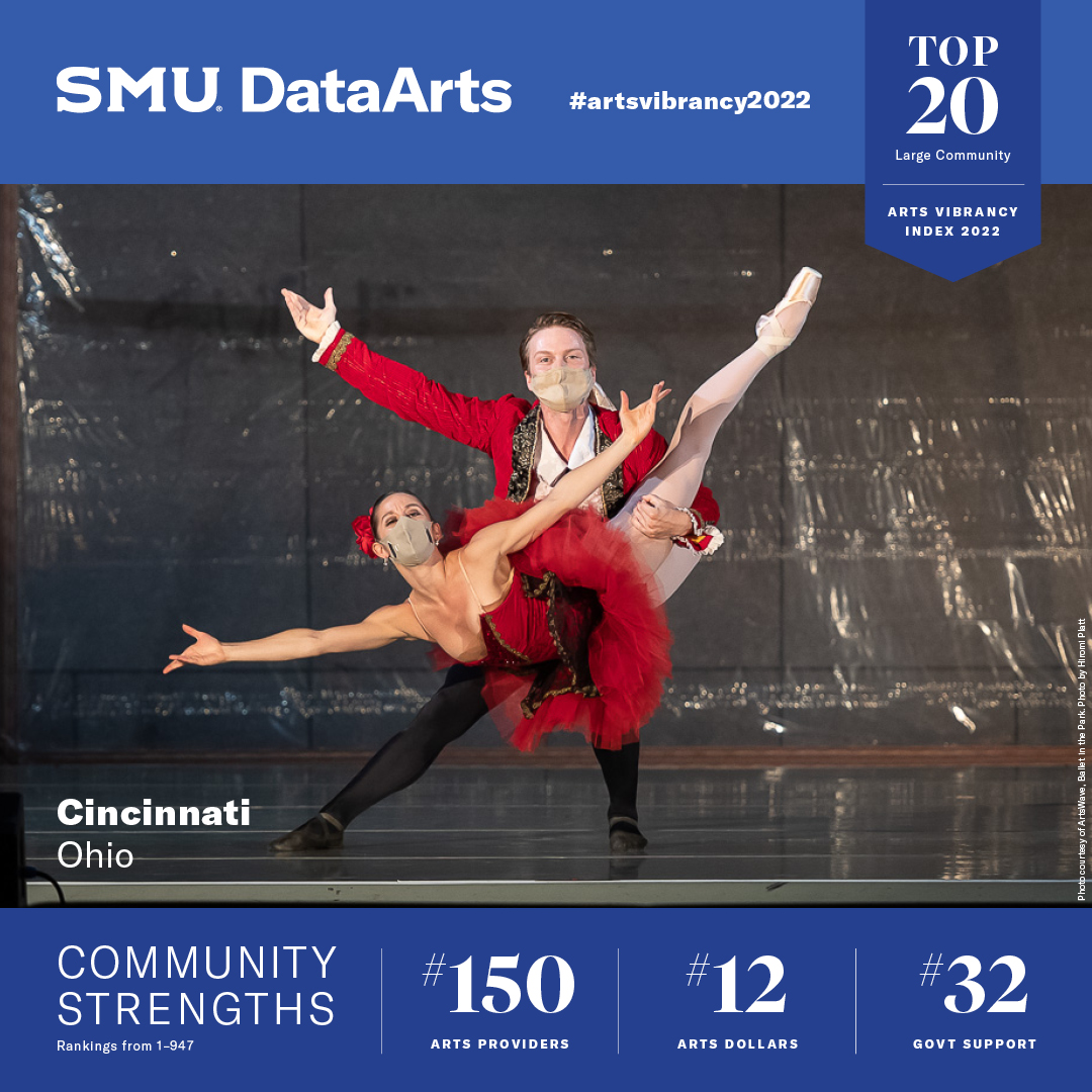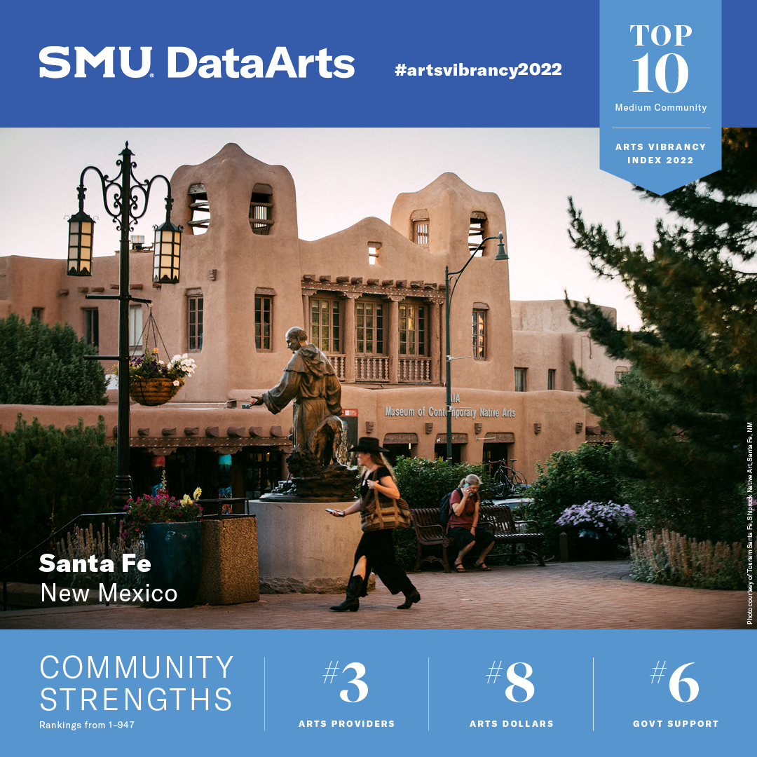 Scores within the top 6% on Arts Dollars overall, including all sub-measures.Among the top 2% on the number of arts and culture organizations per capita.