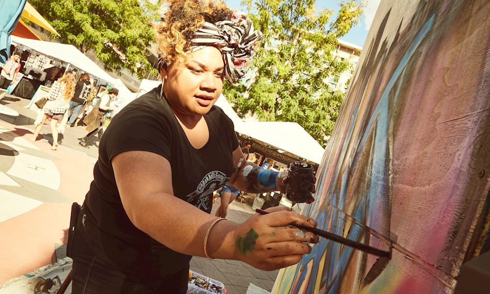 Even prior to the pandemic, Salt Lake City metro area has recognized the arts as a critical element to the health of its community. Enhancing cultural experiences, resourcefulness, and community connection has been a focus of THE BLOCKS since 2018. The countywide initiative aims to advance inclusivity and access to cultural experiences through the promotion of its creative community, facilitation of partnerships and collaborations, and activation of underutilized spaces within downtown. Other recent revitalization initiatives have come in the form of mural work across the city. Salt Lake City’s annual Mural Fest, held in South Salt lake, celebrates the ever-growing collection of mural art in the area. In response to COVID-19 the festival transformed from a centralized street festival to a walking tour of artist meet-and-greets, which centered the festival on accessibility and individual artists.